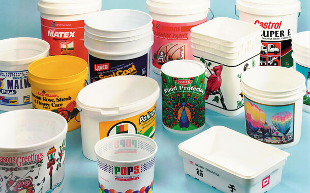 Desco bucket printing machines are capable of printing in up to eight colors, including half-tones, fine line, full process or any combination required. Desco machines are modular in design and many different features and types of automation can be incorporated in the system to meet your production demands, either now or at a later date. All sizes and shapes of tubs, buckets and pails can be printed in high quality on Desco printing machines.